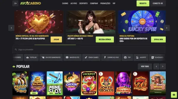 Se está aqui principalmente pelas slots da Avo, os nossos filtros ajudam a ordenar por fornecedor, funcionalidade e tema. Também destacamos jogos de jackpot dentro do lobby, com etiquetas claras para que os identifique rapidamente. Quando os jogadores procuram slots do casino Avo, normalmente querem acesso rápido a novos lançamentos, e mantemos o lobby organizado para não ter de fazer scroll durante muito tempo.